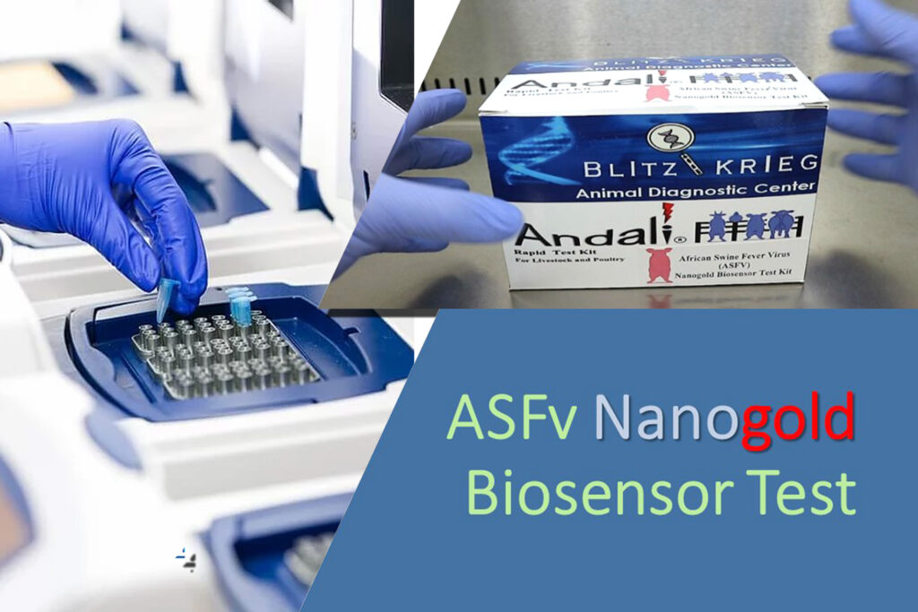 In fact, it can detect the presence of ASF even through surface swabbing of pig barns and delivery trucks, saliva, and nasal swabs, feces, water, semen, feeds, aspirated whole blood, or blood-soaked swabs, and even domestic flies.